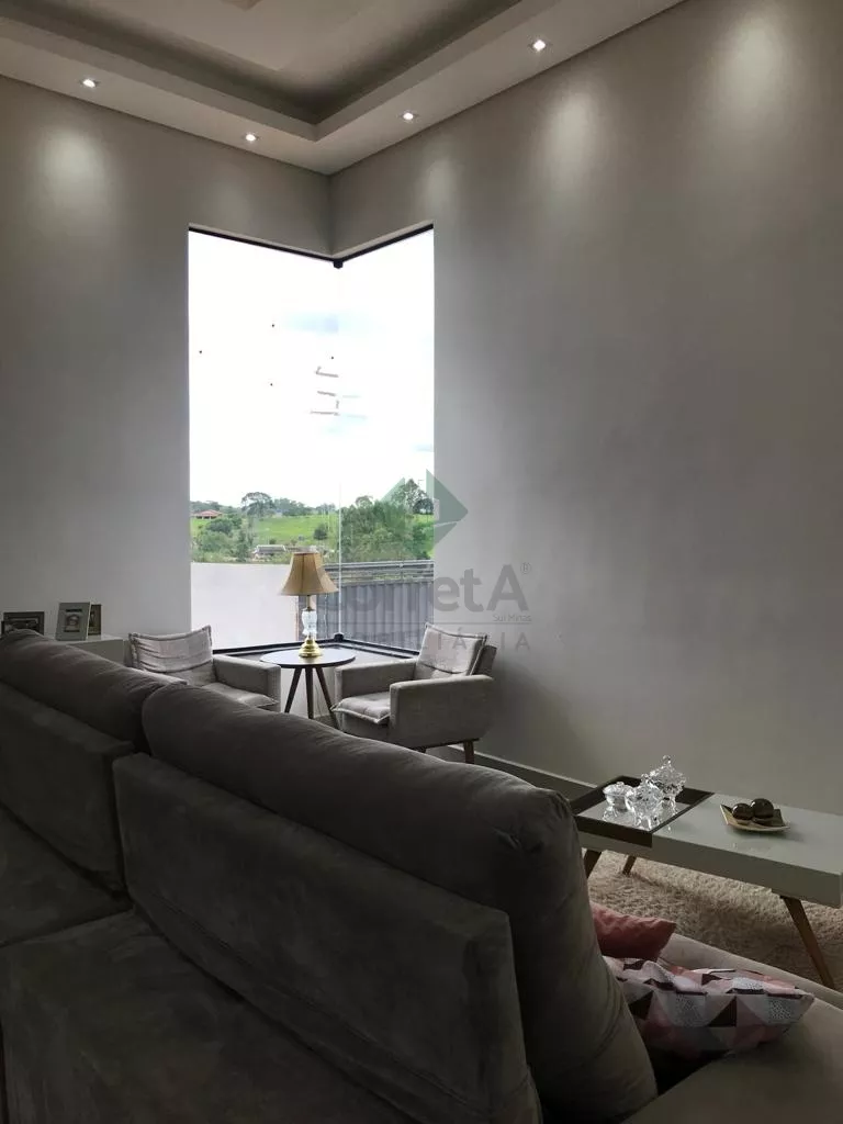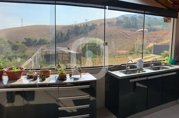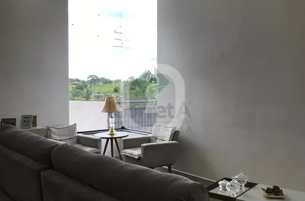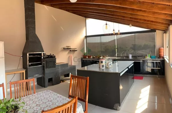 Cozinha e sala americana com pé direito duplo, 4 quartos, sendo: 1 suíte master (com closet e banheira) , 2 suítes, 1 quarto. Quartos com vista para o pomar e jardim, e também com vista para piscina. Corredor com área de serviço e compartimento para guardar itens diversos (quartinho da bagunça ).