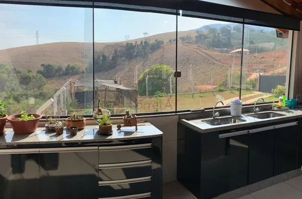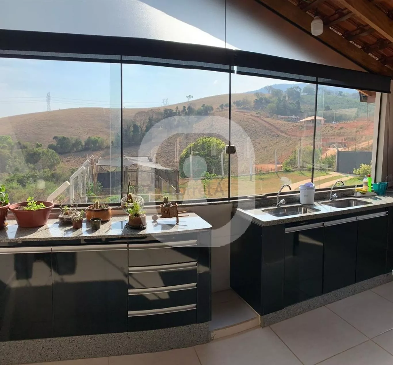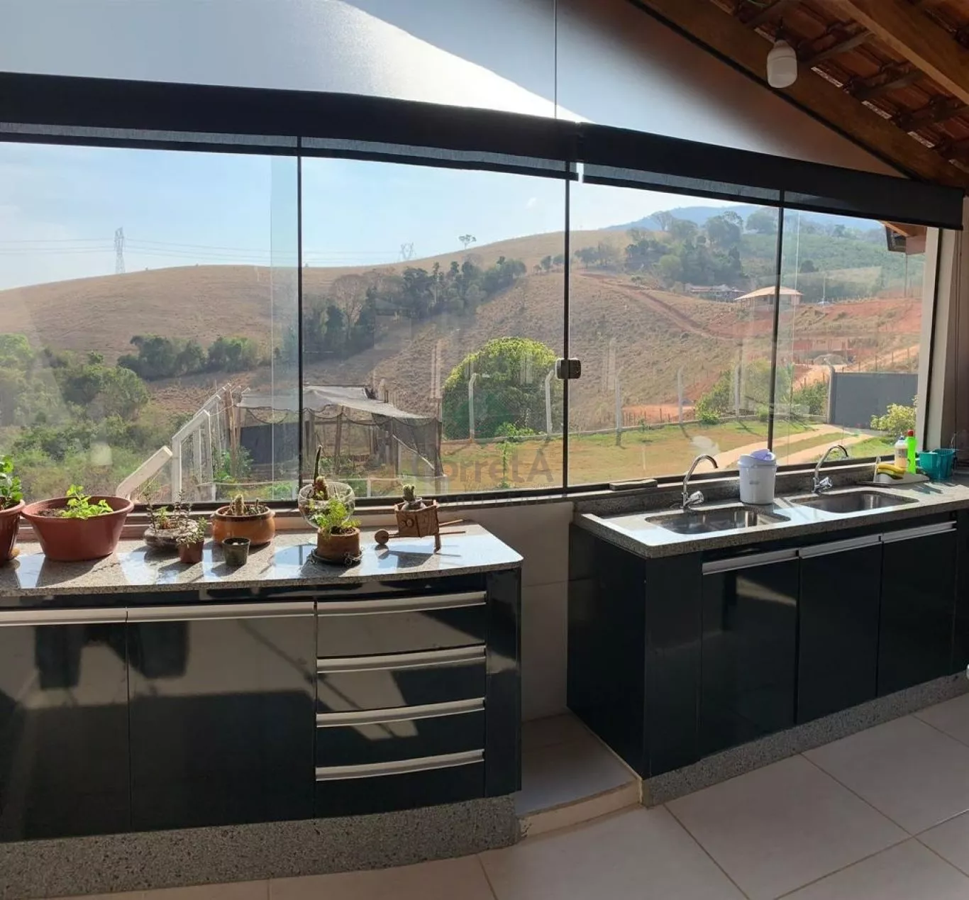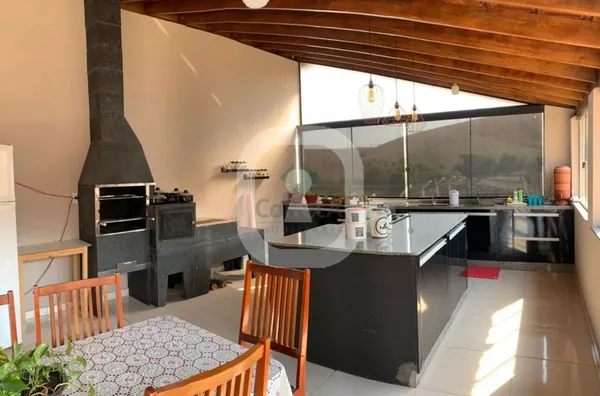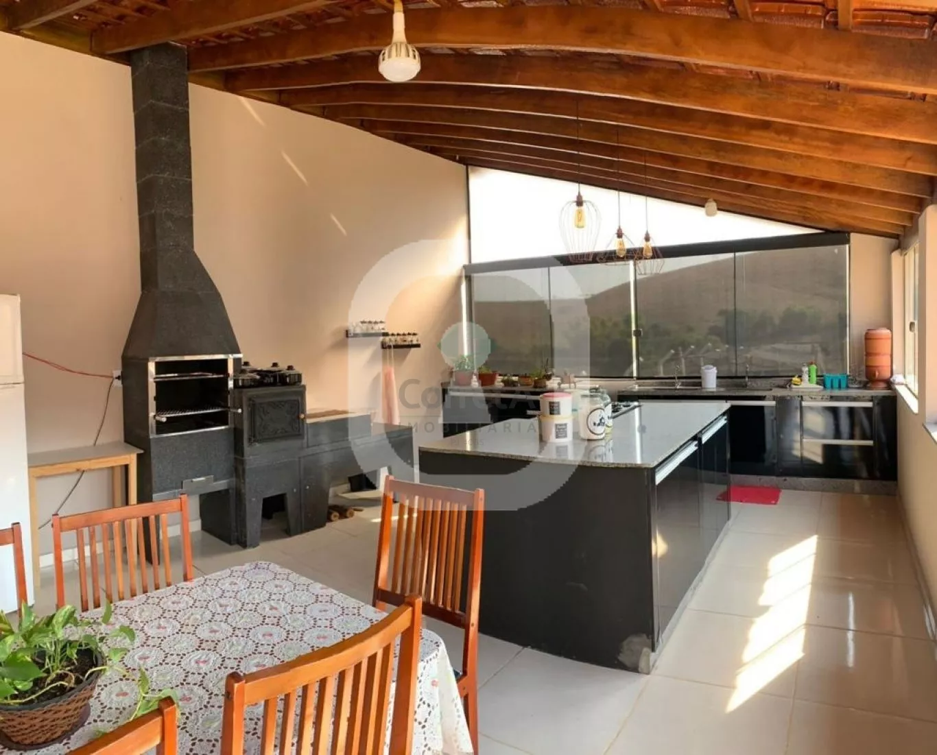 Área externa já pronta, com fogão a lenha, ilha, churrasqueira, pia 2 cubas, televisão, sofá, banheiro com box.