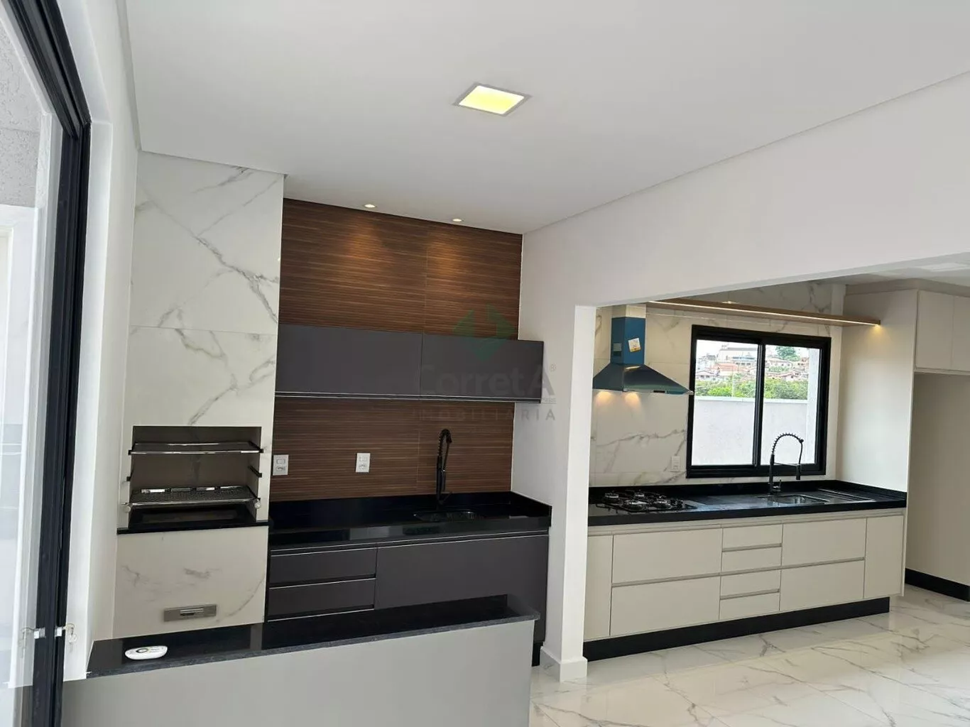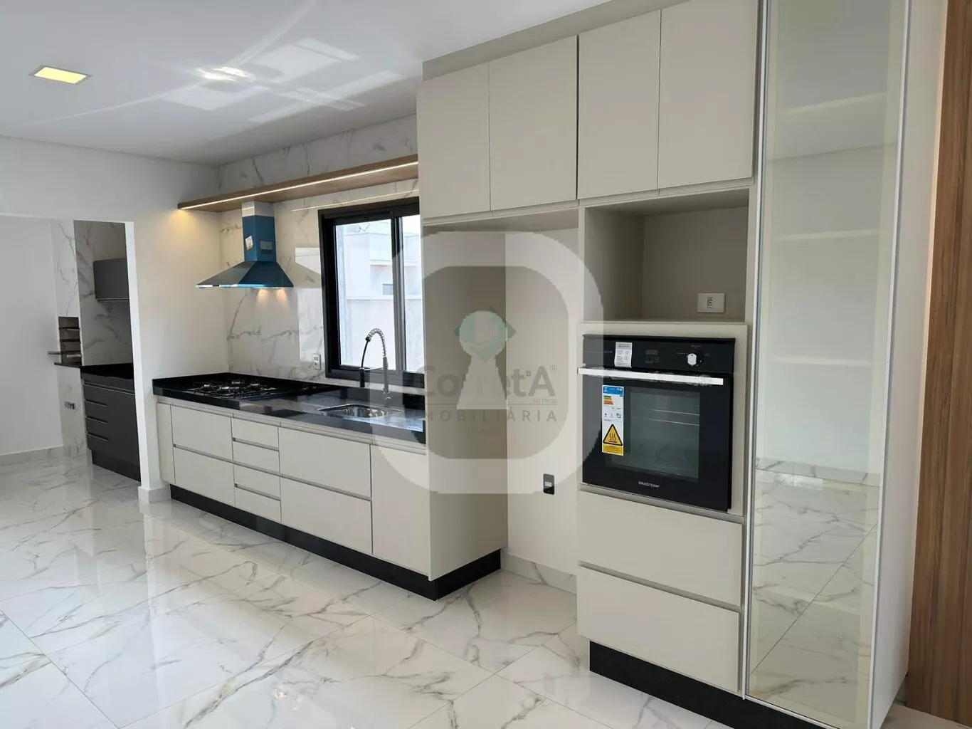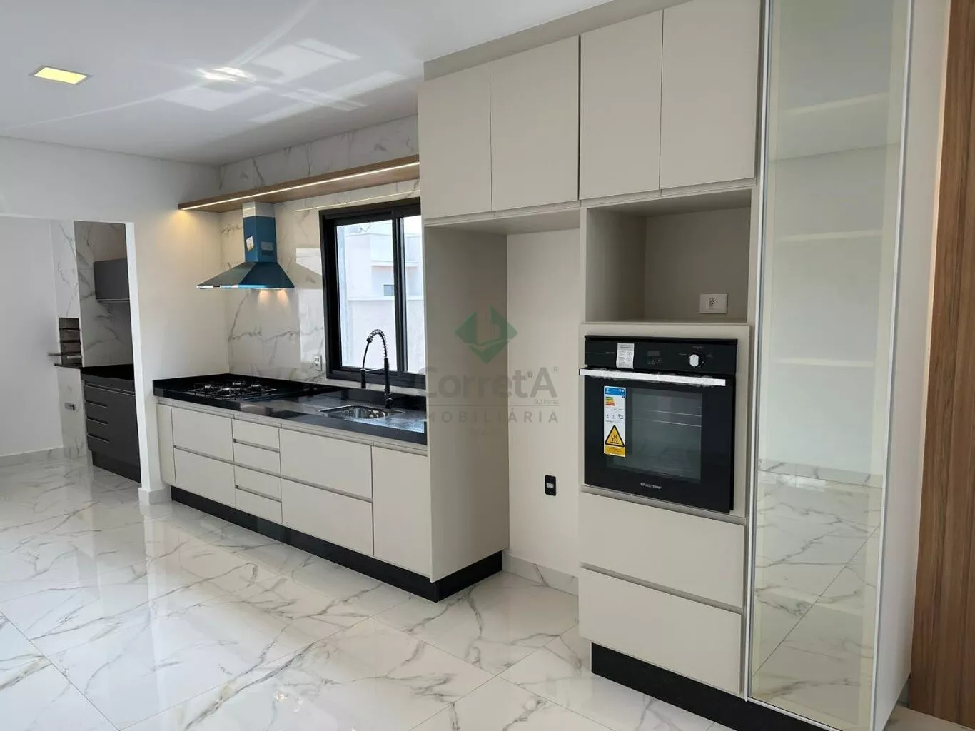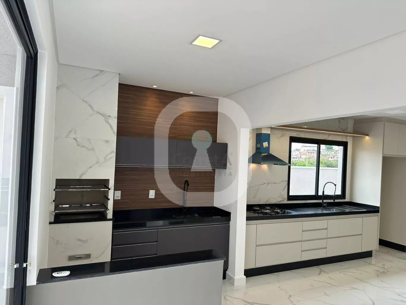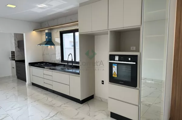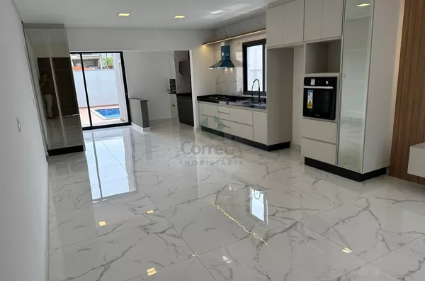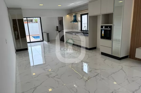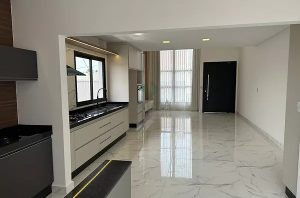 Casa com pé direito duplo, acabamento de primeira linha. Falando dos ambientes integrados desta casa, da sala, da cozinha conjugada com a área de churraqueira. São ambientes conectados ou seja, um espaço de convivência, integrando ambientes e servindo como uma excelente área de socialização entre moradores e seus convidados. Os móveis planejados são da empresa Marcon de Poços de Caldas.