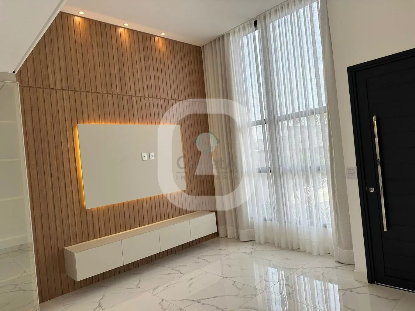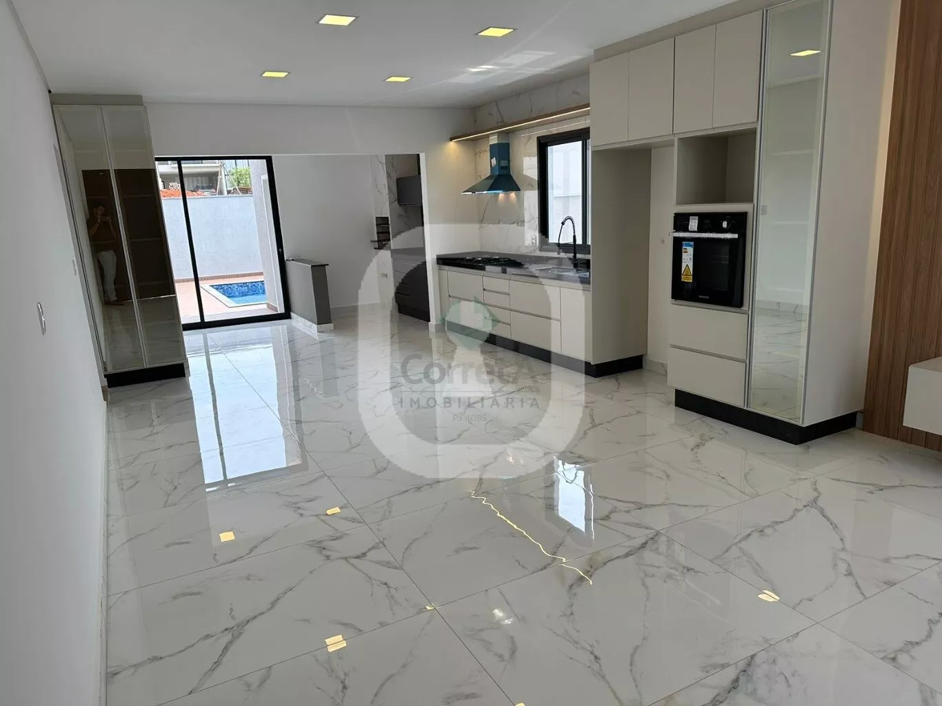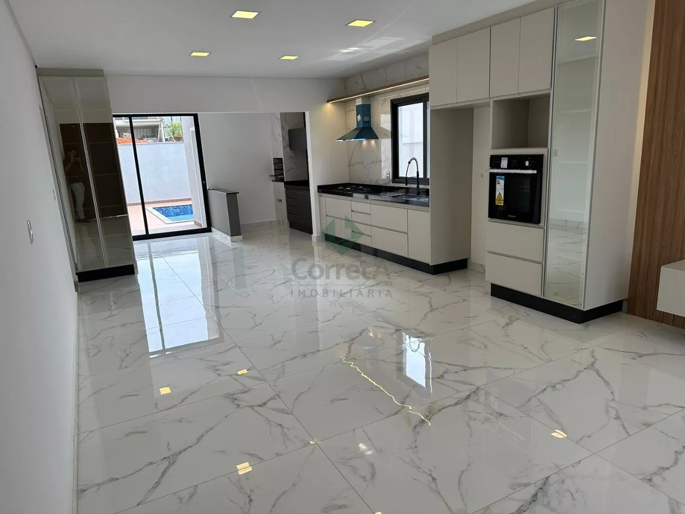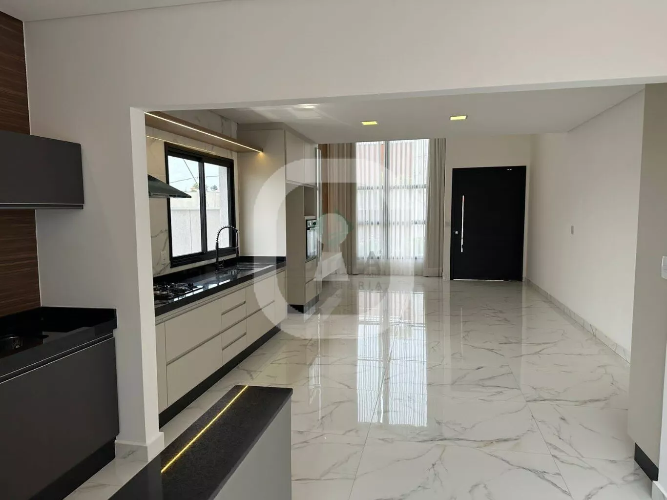 Casa com pé direito duplo, acabamento de primeira linha. Falando dos ambientes integrados desta casa, da sala, da cozinha conjugada com a área de churraqueira. São ambientes conectados ou seja, um espaço de convivência, integrando ambientes e servindo como uma excelente área de socialização entre moradores e seus convidados. Os móveis planejados são da empresa Marcon de Poços de Caldas.