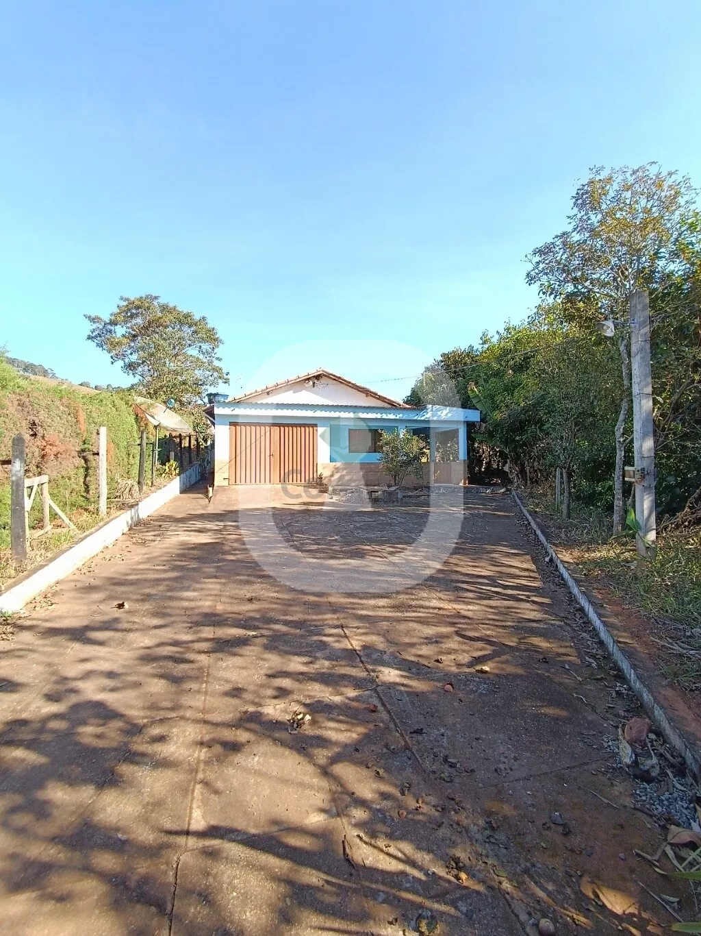 O terreno possui uma área de aproximadamente 12.000m², a casa possui cerca de 130m², a frente com a lateral da casa possui muro verde de cipreste oferecendo mais privacidade. Garagem coberta para 2 carros. Possui varanda, a casa têm 2 quartos bons, sala de tv e estar, banheiro social, cozinha ampla e lavanderia separada.
