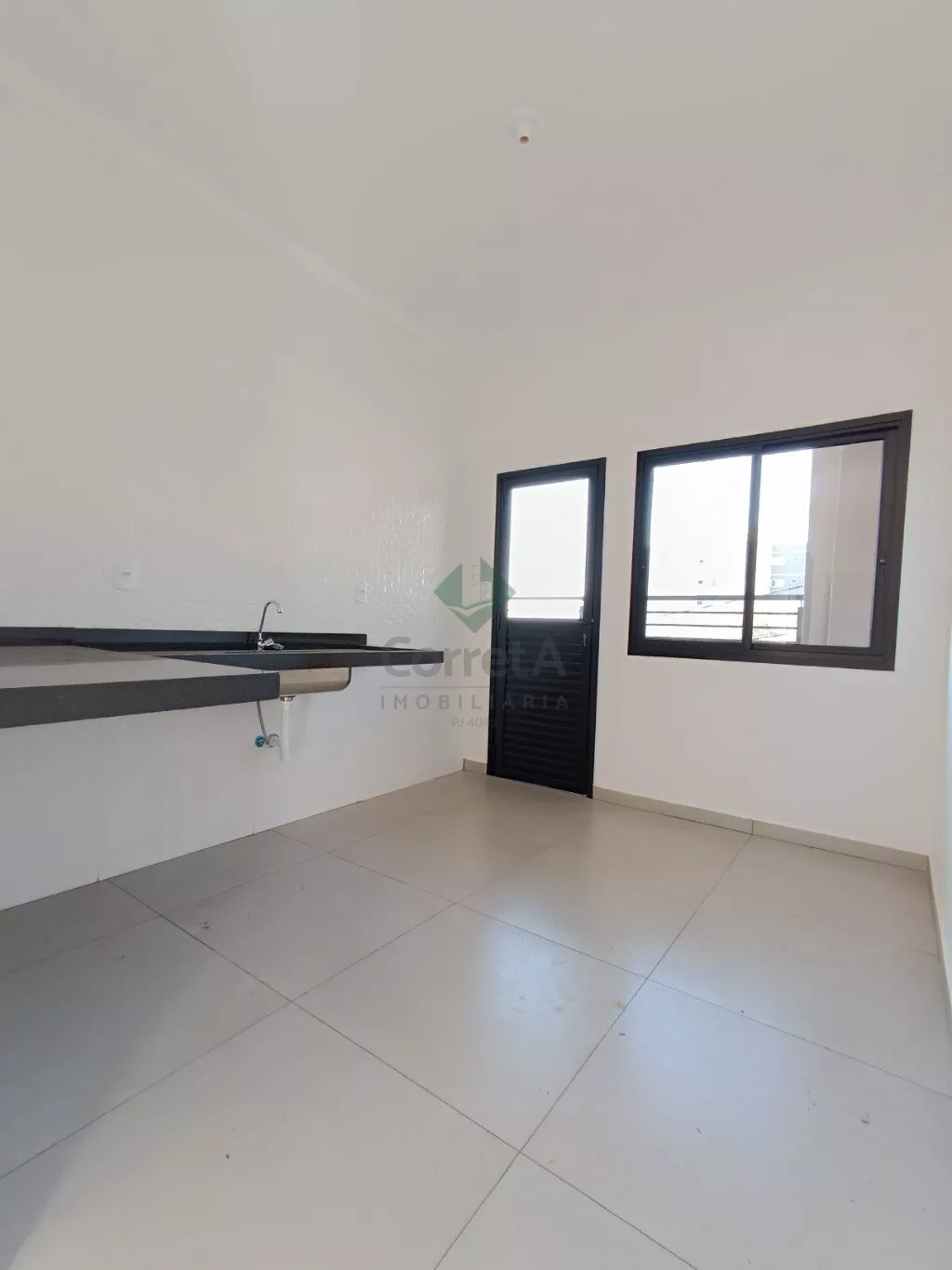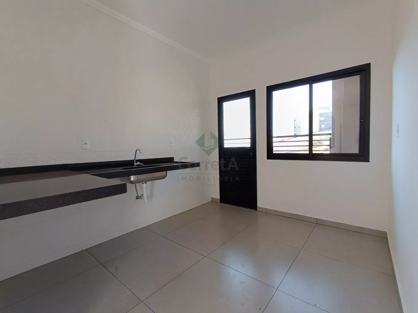 Janelas em alumínio preto.