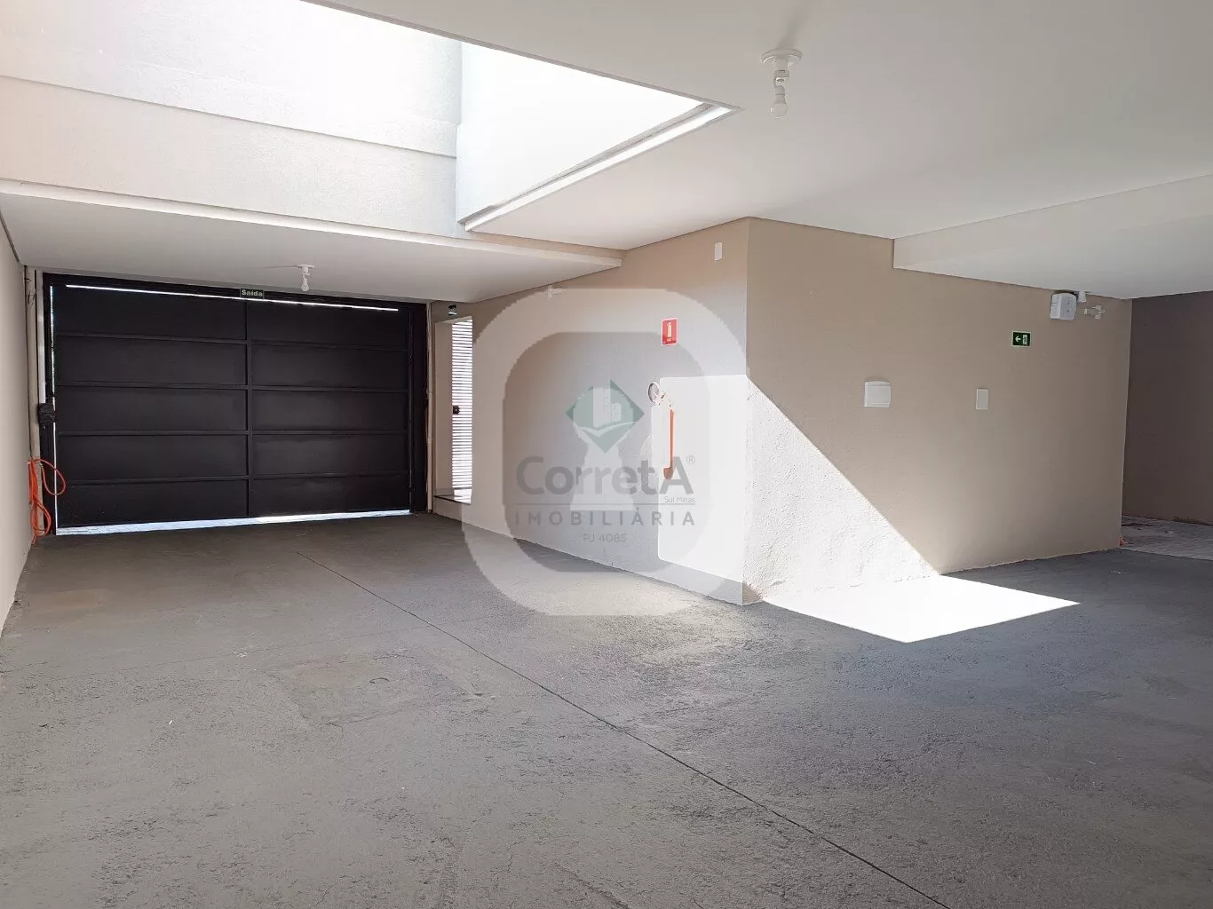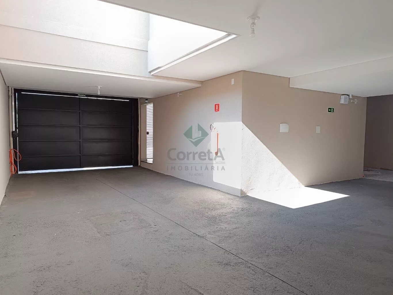 É uma vaga de garagem coberta com portão já automatizado.