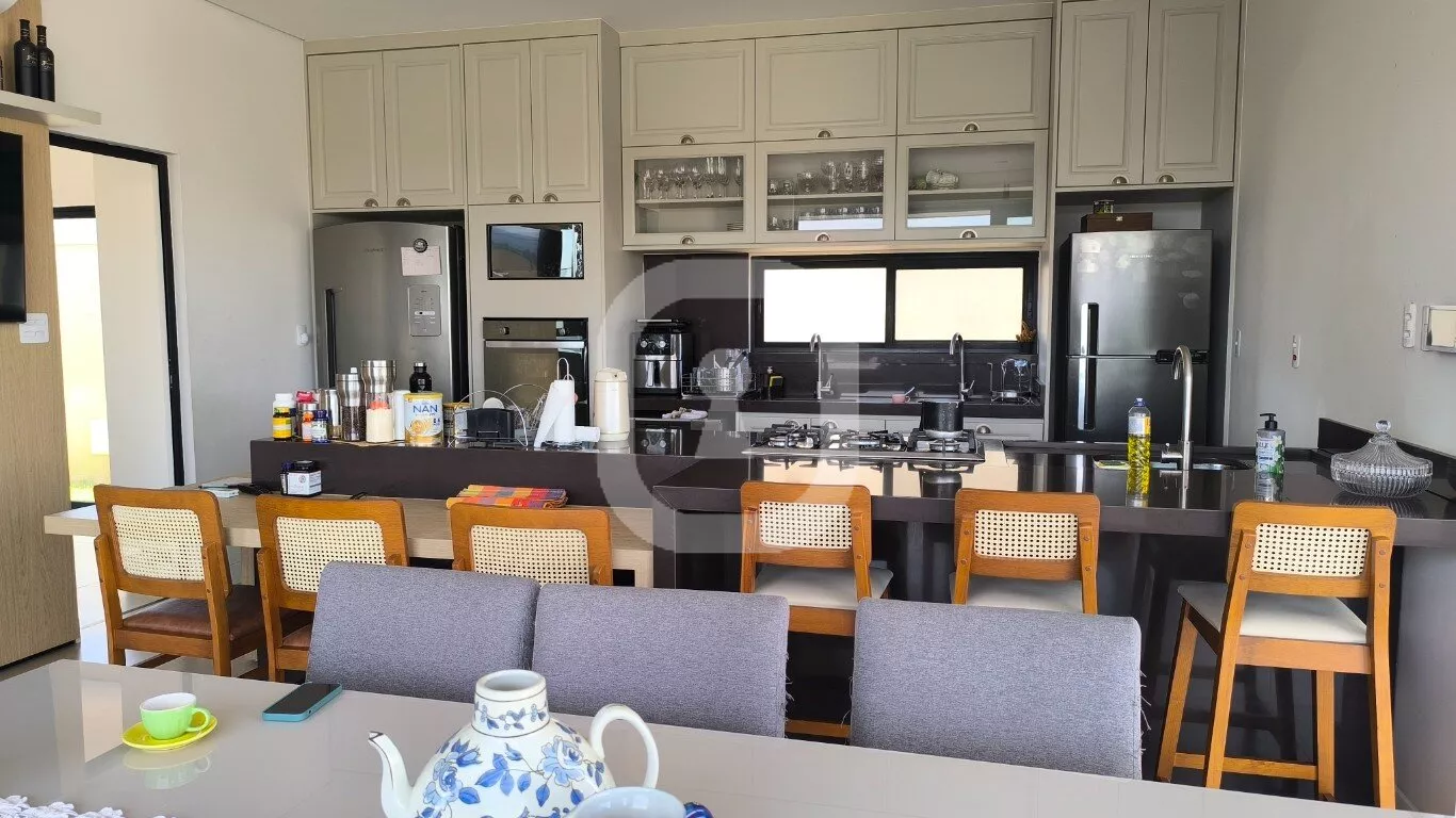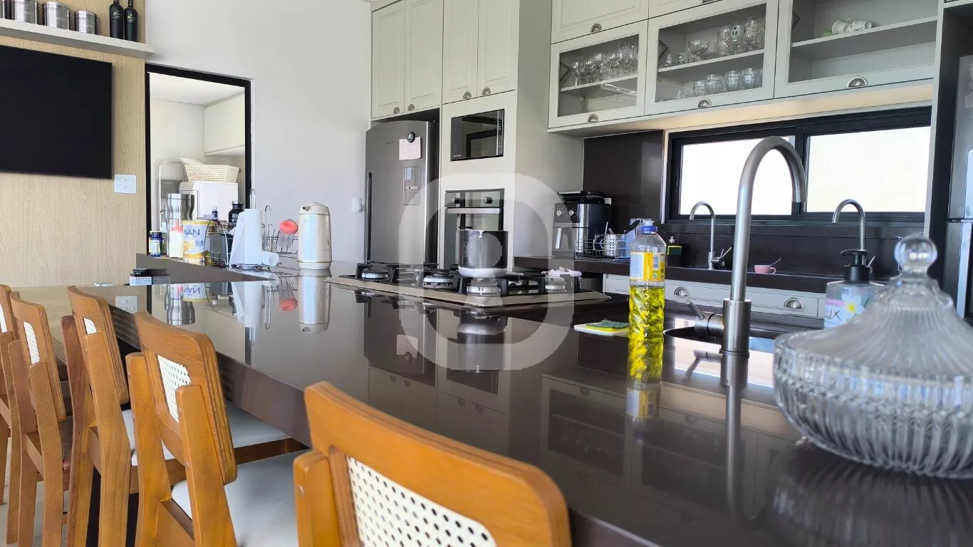 A sofisticada cozinha gourmet (de estilo americano), é um destaque à parte, com um elegante granito marrom absoluto compondo o ambiente, além de estar conectada a uma sala de jantar de 22m², garantindo praticidade e fluidez no dia a dia.