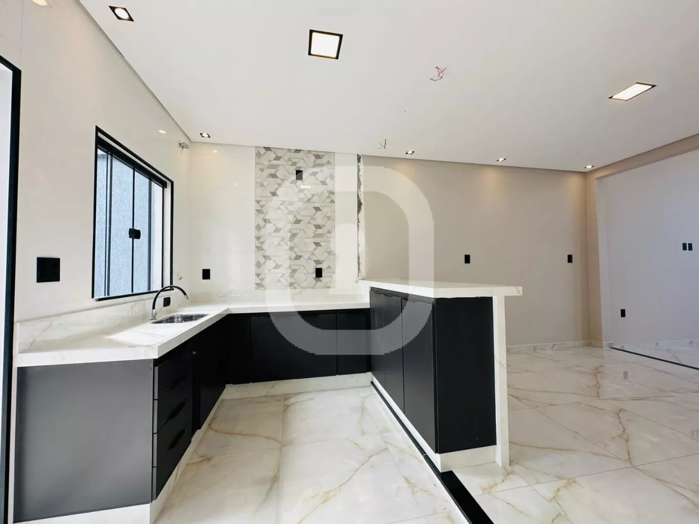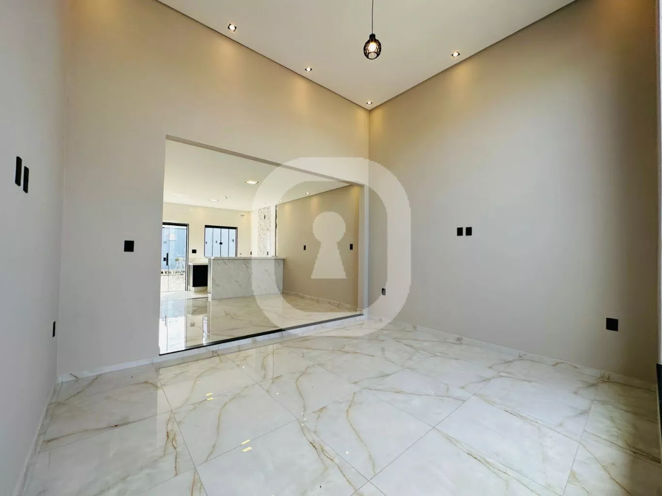 - Pé direito duplo e piso em porcelanato