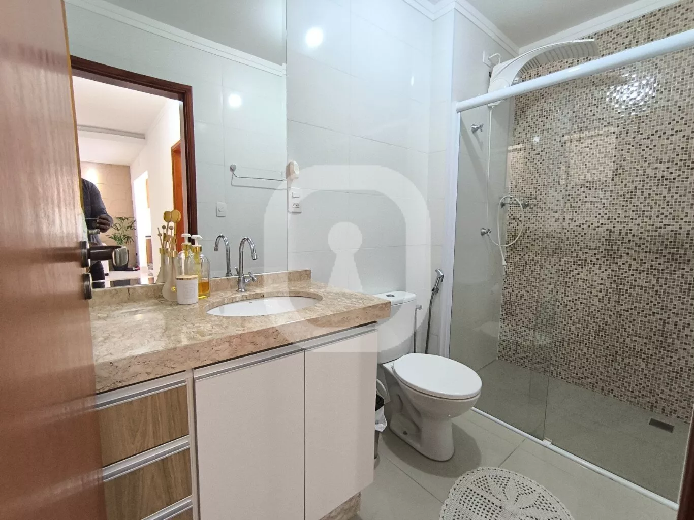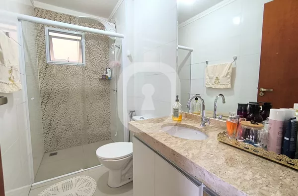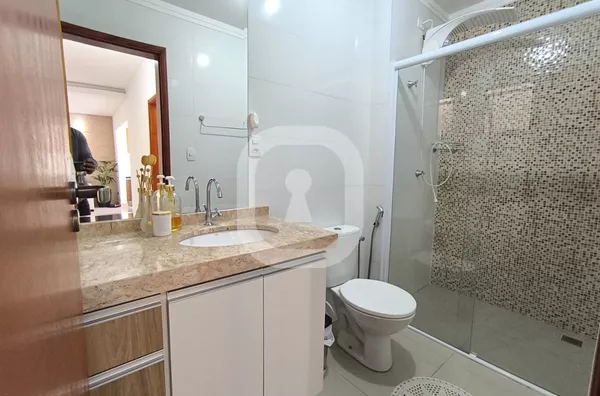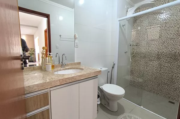 - Banheiros com box, ducha, armários planejados, pia com mármore travertino. Acabamento de qualidade.