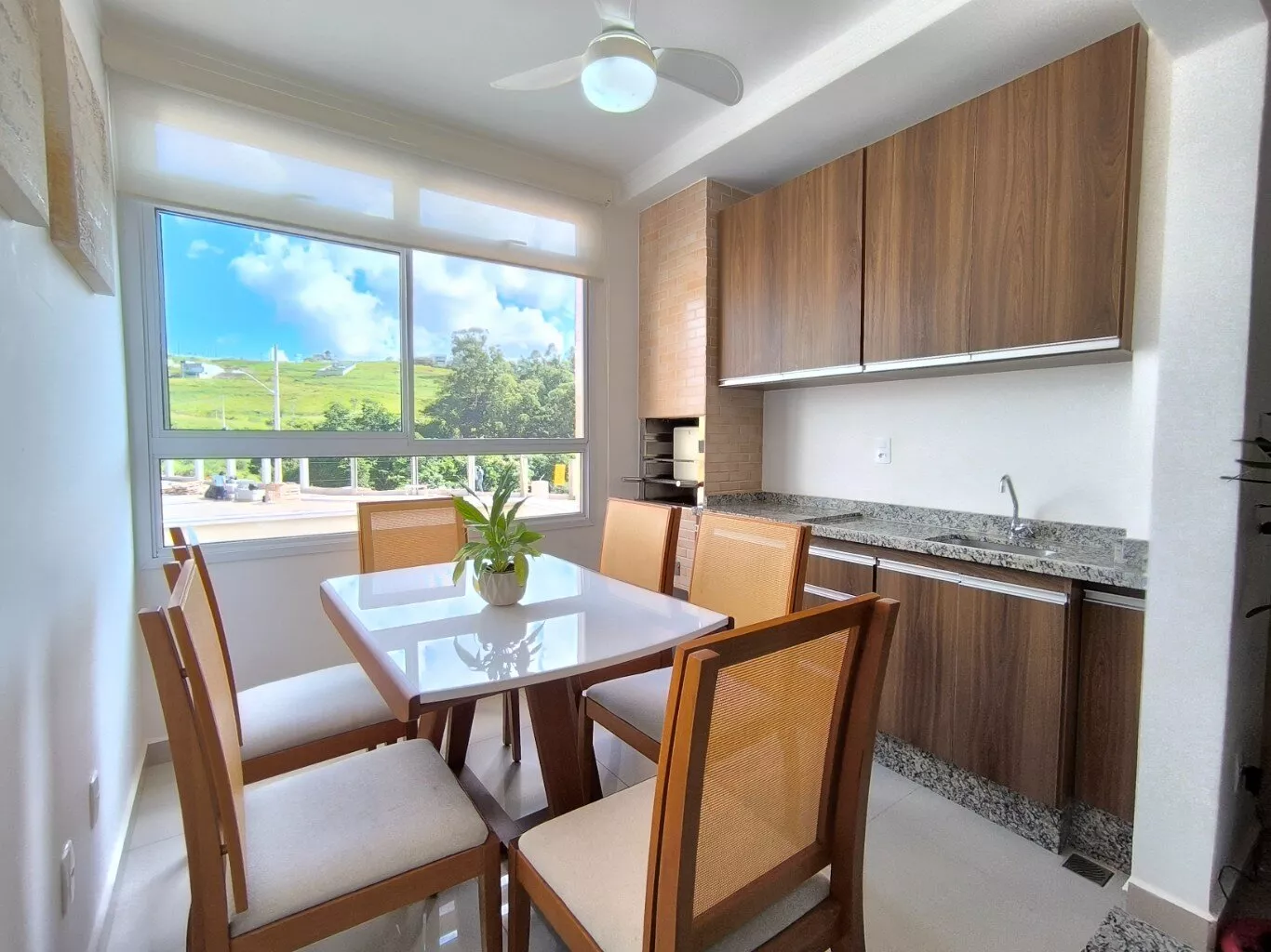 - 1 sala ampla de TV com uma boca de sala para uma varanda gourmet de 10m² com churrasqueira, pia e com mesa de jantar. Ideal para reunir, confraternizar e jantar.