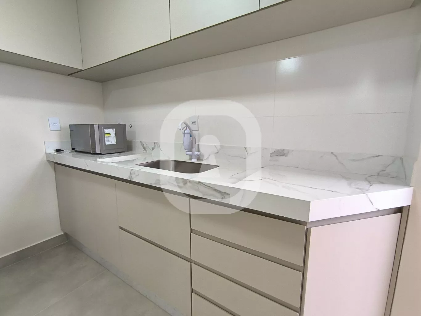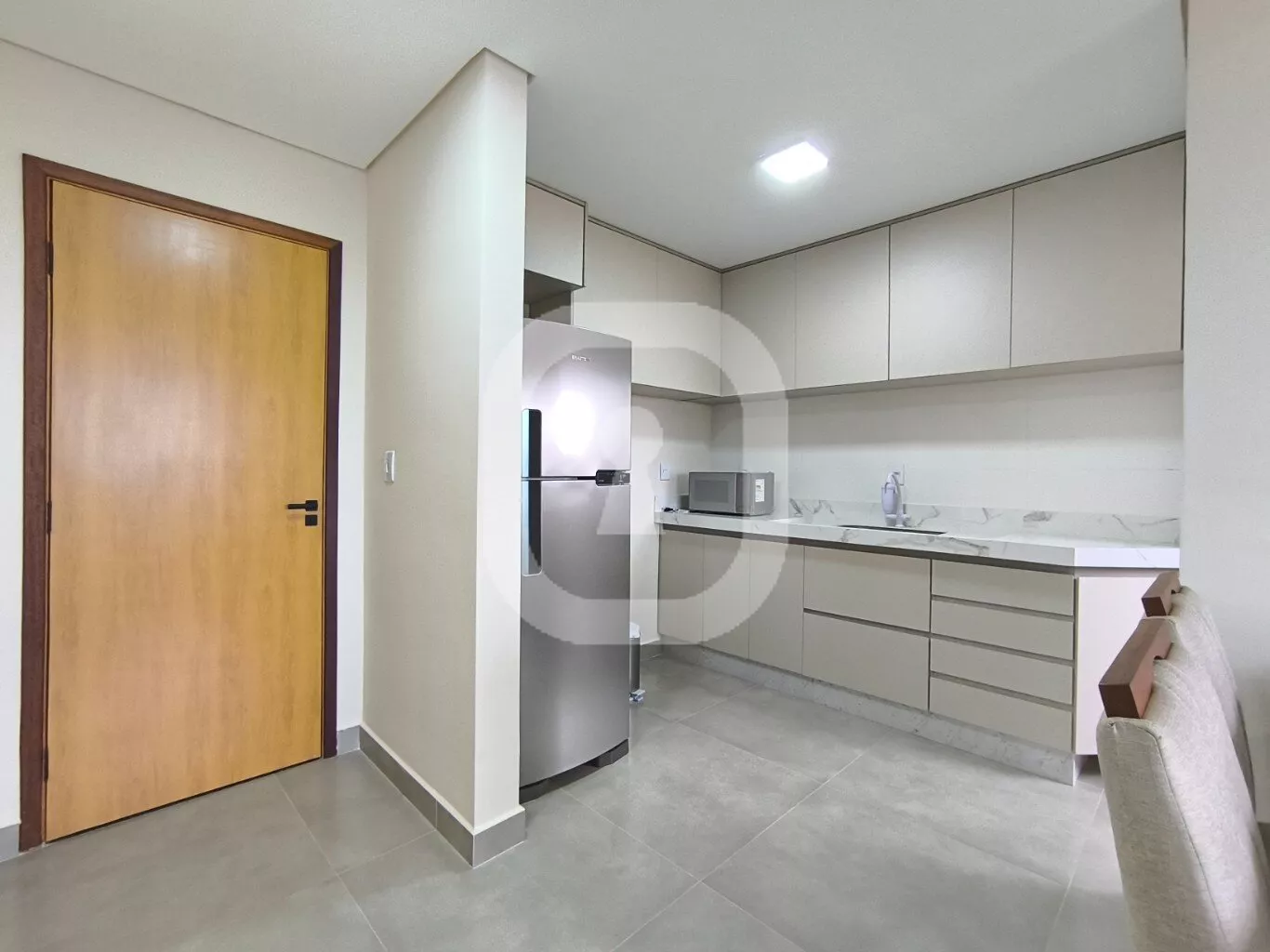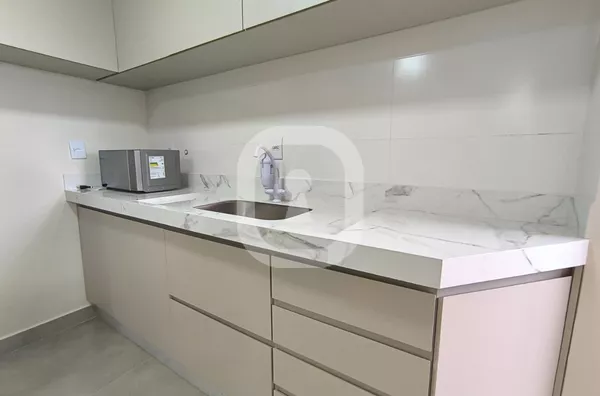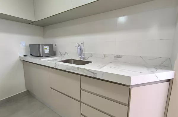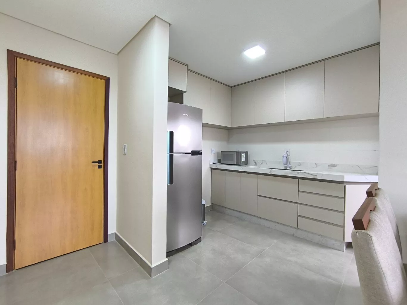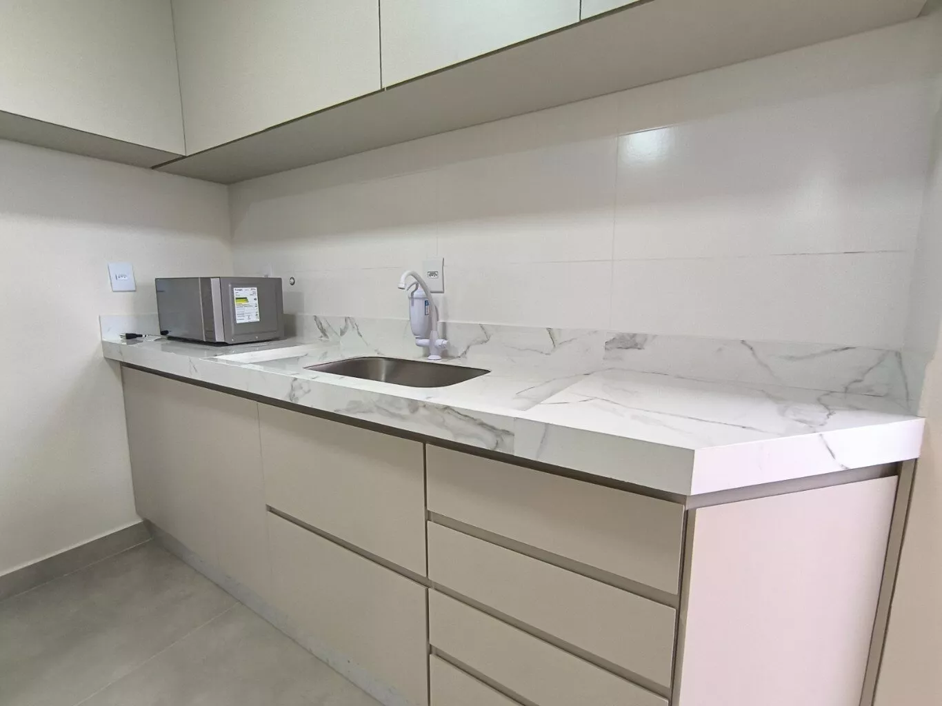 - Cozinha funcional com armários planejados, micro-ondas, geladeira da marca Brastemp;