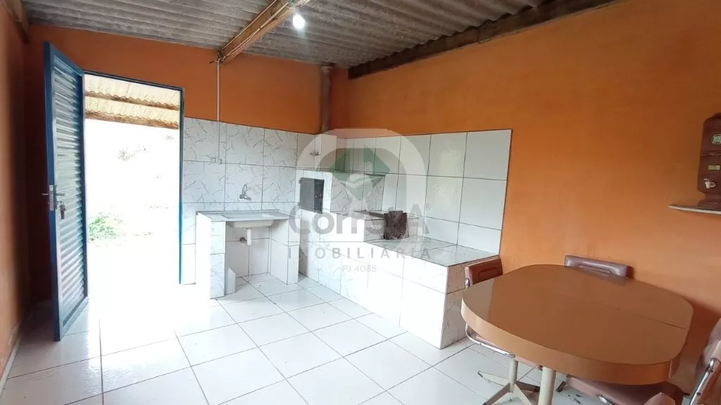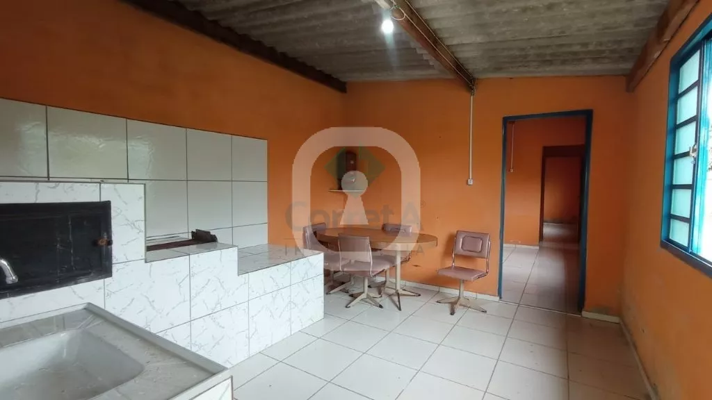 A propriedade inclui uma aconchegante casa com um quarto, uma cozinha equipada com fogão a lenha, sala de estar/jantar, banheiro social e uma prática área de serviço externa. Tudo está em excelente estado de conservação, garantindo conforto e funcionalidade.