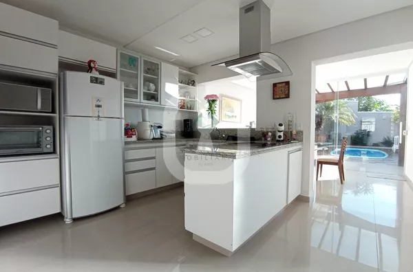 Com localização privilegiada, possui três quartos (sendo duas suítes). Em dois pavimentos, a casa tem sala de estar e TV além dos quartos. No primeiro pavimento, cozinha com armários planejados, sala de jantar, garagem para 4 carros, lavanderia e um espaço gourmet maravilhoso.